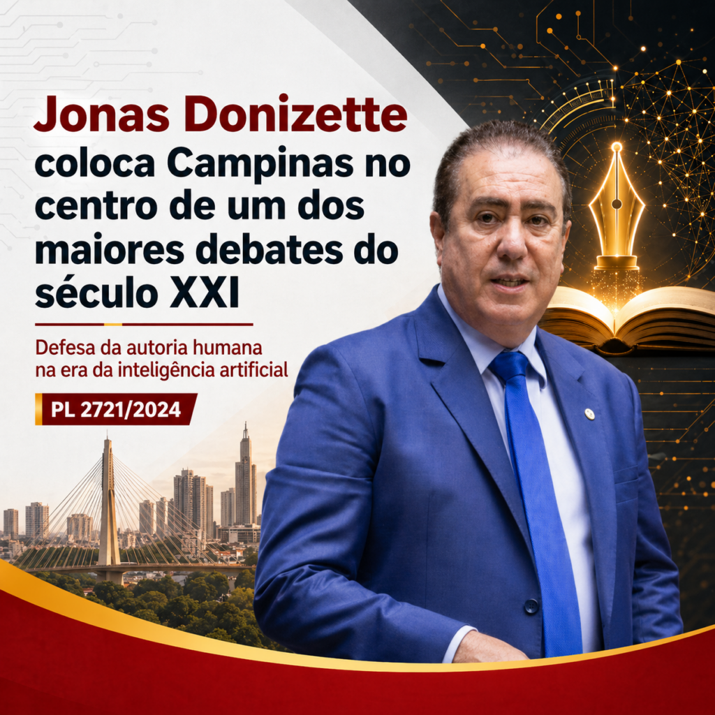 Entre 2022 e 2026, o deputado federal Jonas Donizette consolidou uma atuação de forte relevância nacional ao liderar uma pauta que dialoga diretamente com o presente e com o futuro do Brasil: a defesa da autoria humana na era da inteligência artificial.